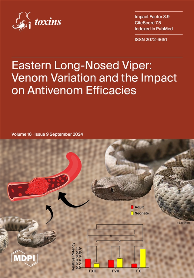 Qiao, Z.; Jones, L.; Bourke, L.A.; Seneci, L.; Chowdhury, A.; Violette, A.; Fourmy, R.; Soria, R.; Aldridge, M.; Fry, B.G. Tiny but Mighty:Vipera ammodytes meridionalis(Eastern Long-Nosed Viper) Ontogenetic Venom Variations in Procoagulant Potency and the Impact on Antivenom Efficacies.Toxins2024, 16, 396.https://doi.org/10.3390/toxins16090396