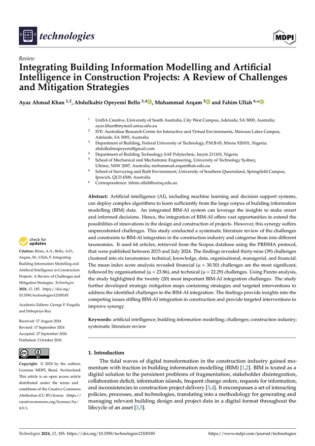 本文对基于建筑信息模型的人工智能孪生模型面临的挑战和制约因素进行了系统的文献综述。