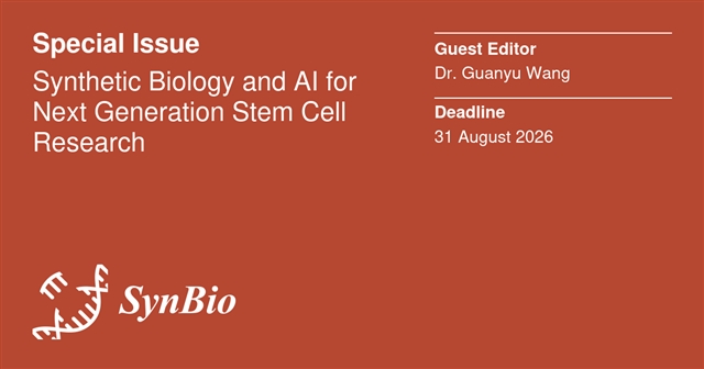 SynBio邀请了香港中文大学(深圳)王冠宇博士建设特刊Synthetic Biology and AI for Next Generation Stem Cell Research (下一代干细胞研究中的合成生物学与人工智能)。本特刊重点关注将合成生物学与干细胞科学相结合的创新成果——借助人工智能和计算生物学的支持——以促进机制洞察、可控分化及治疗开发。特刊包括但不限于以下主题: