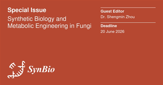 SynBio期刊特邀华东理工大学周胜敏博士担任客座编辑,组织建设特刊 Synthetic Biology and Metabolic Engineering in Fungi。本特刊重点关注合成生物学原理在真菌系统中的设计、构建与优化应用,涵盖遗传元件设计、基因线路构建、代谢通路重构及系统优化等方向。