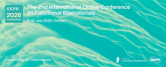 由 MDPIJournal of Functional Biomaterials(ISSN 2079-4983, Impact Factor 5.2) 主办的第二届国际功能生物材料线上会议(IOCFB 2026)将于2026年7月8–10日在线举行。为吸引更多高质量研究成果参与交流,经组委会决定,摘要投稿截止日期延期至 2026年4月6日。