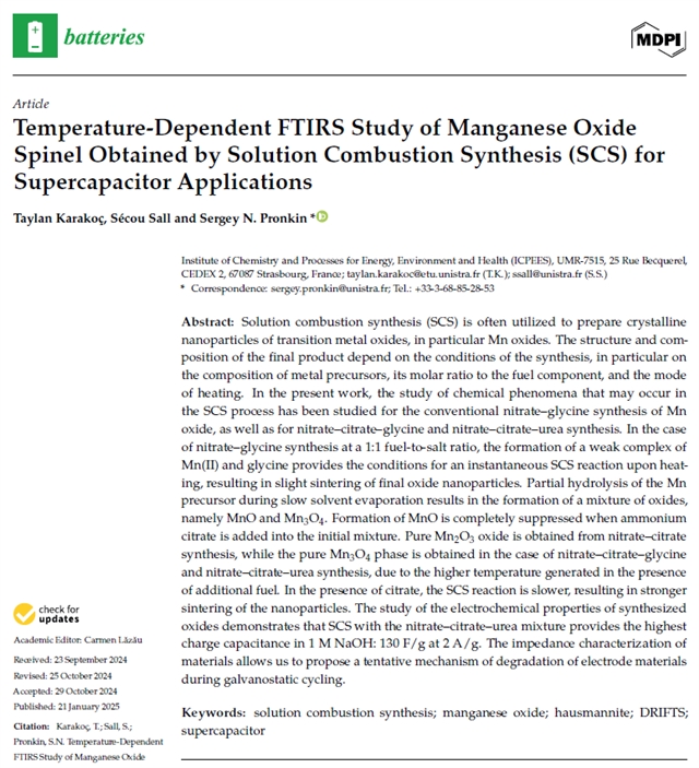 用于超级电容器的溶液燃烧合成锰氧化物尖晶石的温度依赖性FTIRS研究