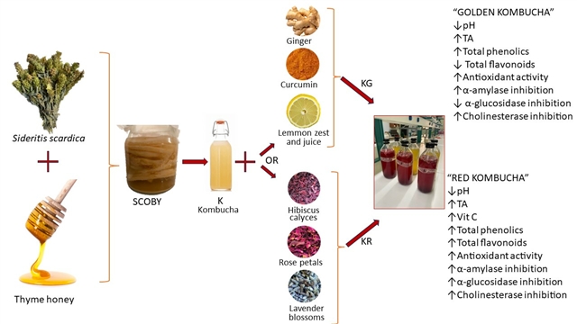 15.Evaluating the Effect of Adding Selected Herbs, Spices, and Fruits to Fermented Olympus Mountain Tea (Sideritis scardica) Kombucha Sweetened with Thyme Honey: Assessment of Physicochemical and Functional Properties