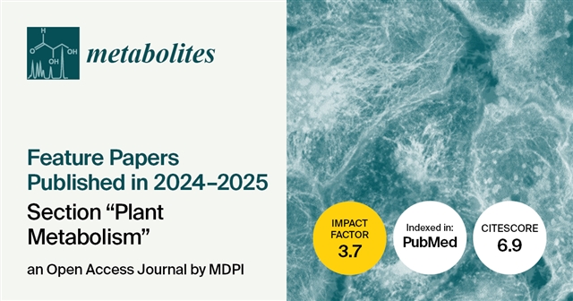 “植物代谢”栏目致力于发表植物代谢组学领域的创新研究,利用LC-MS、GC-MS及NMR等先进技术解析植物组织(根、茎、叶、果实及种子)中初级与次级代谢物的谱图特征与动态变化,涵盖植物生理、病虫害防御、根际互作、天然产物开发及食品营养等方向。有关本栏目的更多信息,请访问以下网站:https://www.mdpi.com/journal/metabolites/sections/plant-metabolism