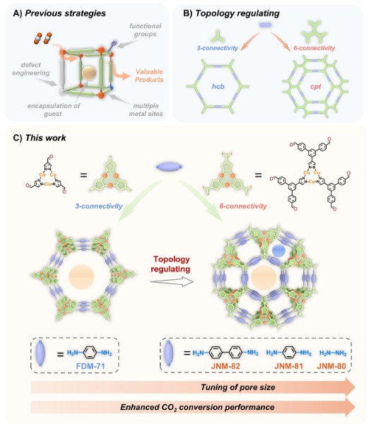 | 调控共价金属有机框架的拓扑结构与孔径,助力提升CO2催化转化性能 |