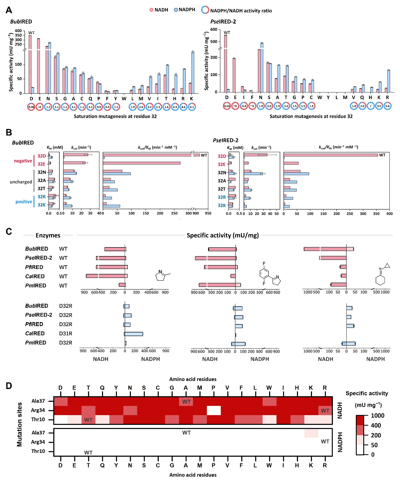 图7:NADH依赖型亚胺还原酶的关键残基突变实验。