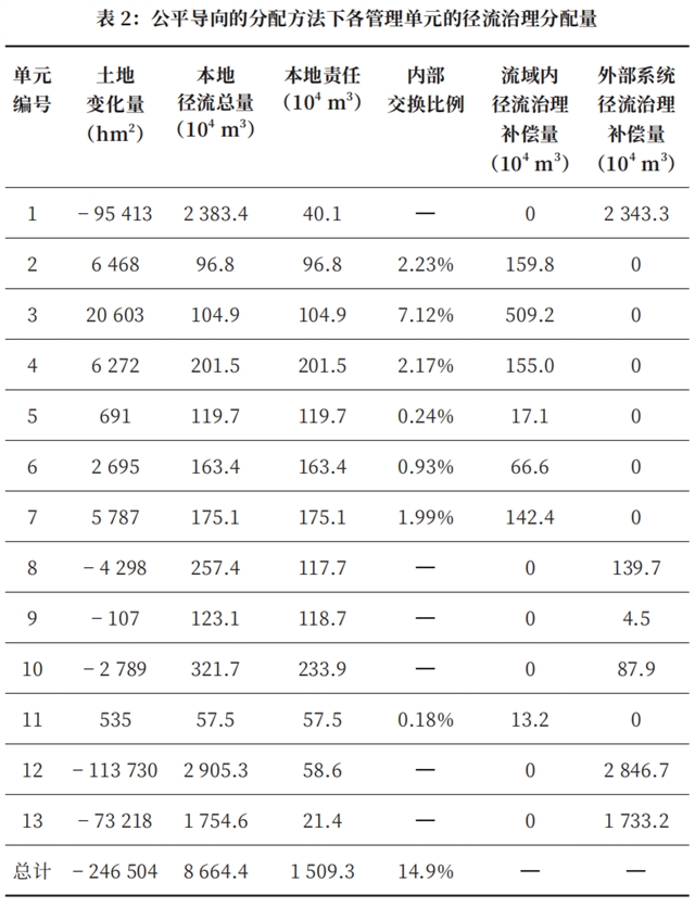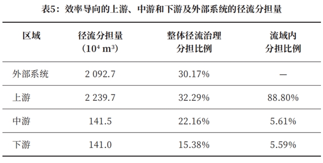 综上,效率导向的分配方法依据各地区经济生产和径流治理的实际效率进行径流分配,径流的治理责任相较于其产生区位发生转移;而公平导向的分配方法则通过补偿机制,实现径流就近处理,径流的治理责任相较于其产生的区位不发生转移。