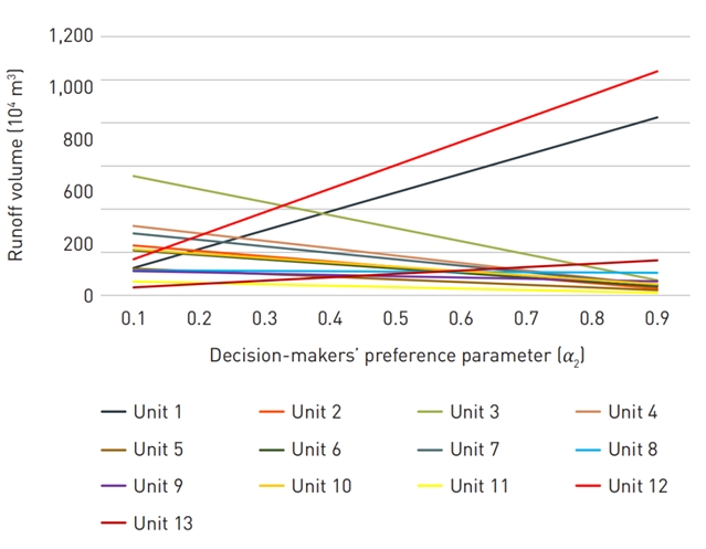 不同决策者偏好(α 2)下各管理单元的径流分担量 © 苏清木,闵宇帝