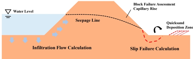 图1.堤坝渗流和滑移破坏过程概述