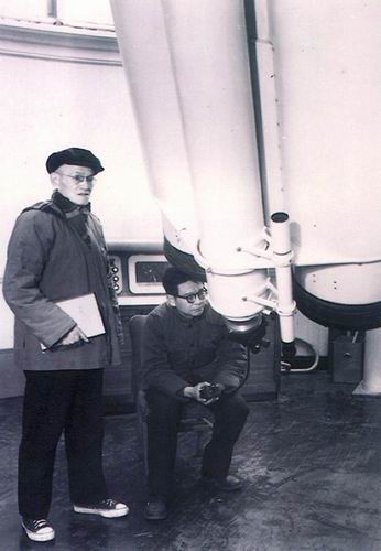 在展馆中,一份观测人造卫星望远镜的设计图纸和模型、两本铅印的《人造地球卫星轨道计算》《人造地球卫星轨道改进》(1968年)报告、几张中国科学院紫金山天文台(以下简称紫金山天文台)原台长张钰哲和张家祥观测星空时的照片……展现了紫金山天文台与“两弹一星”工程的深厚渊源。