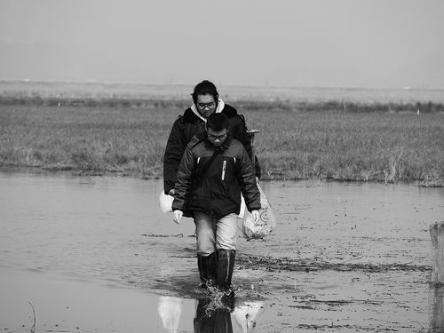 “小心芦苇刺,扎手!”谢永宏拨开比人高出半米多的芦苇秆,提醒身后的学生。