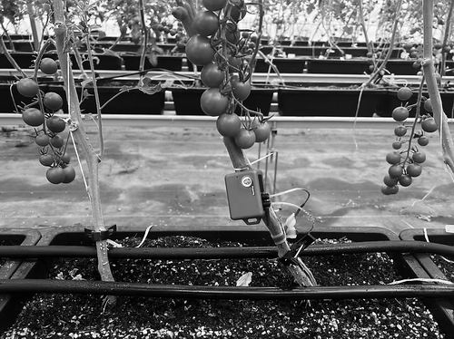 安装在番茄成株上测量茎直径的PlantRing。受访者供图