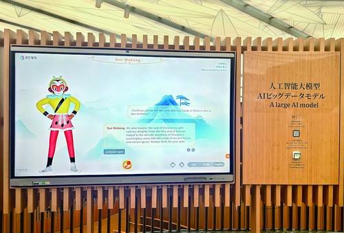 据介绍,该展项由科大讯飞与上影元联合共创,“AI孙悟空”的形象也取自上海美术电影制片厂在20世纪60年代创作的经典动画片《大闹天宫》。图为中国馆的“AI孙悟空”。本报记者赵广立报道 科大讯飞供图