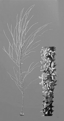 现代黑珊瑚共有8科301种,75%生活在深海。不同于常见的珊瑚,黑珊瑚是一种分枝状的群体型六射珊瑚,即组成它的珊瑚虫通常拥有六只触手。