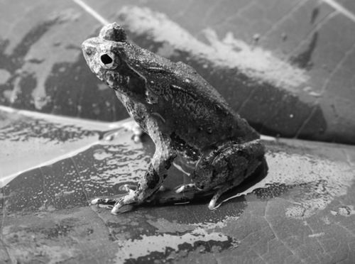 要找到灌丛中的“伪装者”并不容易,它们体形小且体色和周围环境相似。起初团队成员打着手电四处寻找,但角蟾非常警惕,一有灯光和脚步声,鸣叫声便马上停止。