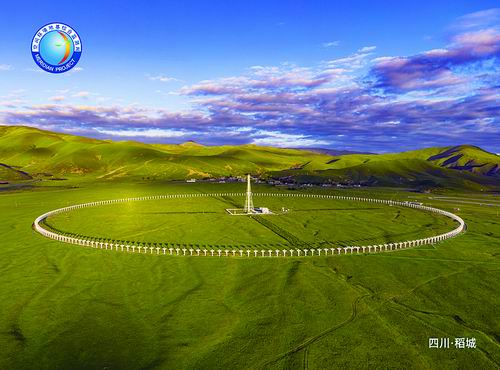 “千眼天珠”位于四川稻城县海拔3830米处,是目前全球最大的综合孔径射电望远镜。装置中,313台直径6米的天线均匀分布在1公里直径的圆环上,像向日葵一般跟着太阳转动,圆环正中心是一座百米高的定标塔。
