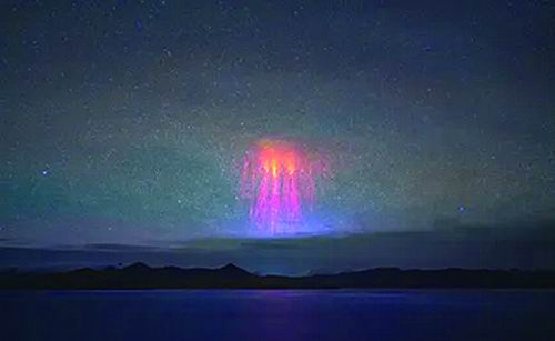 他们拍摄到的是被称为“红色精灵”的中高层大气放电现象,科学家形象地称之为地球大气层的“闪电烟花”。