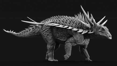 这一新标本被证实属于甲龙类,并显示出复杂的皮肤甲片。这一骨架包含6根顶部有尖刺的肋骨、带有板状结构的骨质颈环及两对尖刺——近乎完好的87厘米长的尖刺,以及带有长短尖刺的盆骨盾甲。尾端独特的骨骼则暗示了尾部武器的存在。