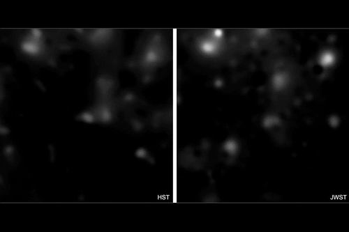 哈勃空间望远镜(左)和JWST观测到的暗物质分布情况。图片来源:Gavin Leroy/ Richard Massey