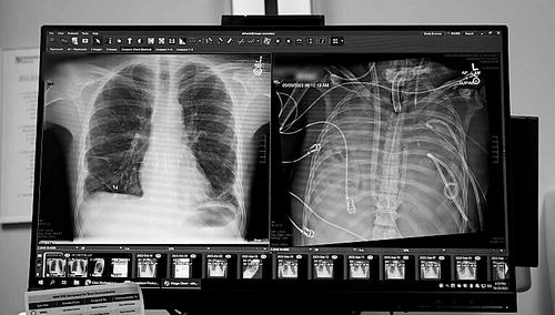 X光片显示的一名33岁患者的新肺(左)和旧肺。图片来源:美国西北大学