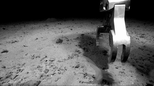 一只海参在布满结核的太平洋海底爬行。图片来源:ROV Isis/SMARTEX