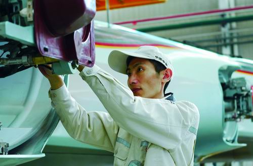 李文龙正在装配时速350公里的复兴号智能动车组。邓旺强供图