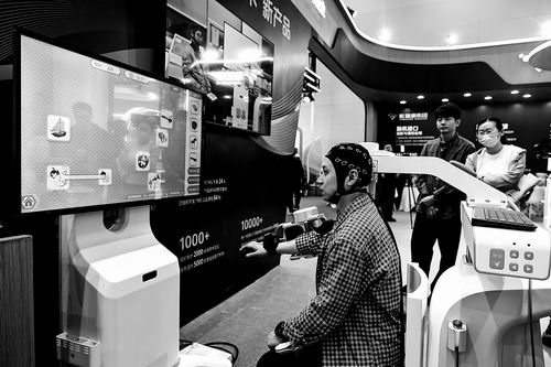 图为工作人员演示“光电双模态”脑机接口康复系统。中新社记者张畅/摄 图片来源:视觉中国